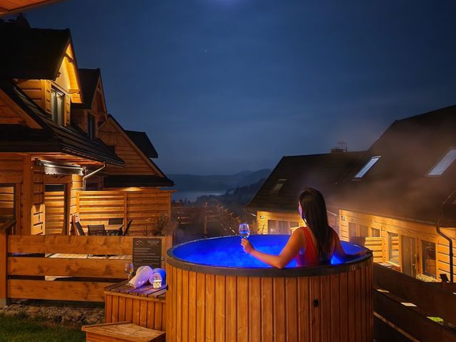 Otwórz drzwi do swojego domku i zanurz się w malowniczej scenerii górskiej przyrody, otoczonej jeziorem, która zapewni Ci niezapomniane chwile relaksu z dala od miejskiego zgiełku. Oczaruj się zapierającymi dech w piersiach widokami, które uczynią Twój pobyt niezapomnianym doświadczeniem w otoczeniu przyrody. Malownicze szlaki górskie, urocze plaże nad jeziorem, trasy rowerowe i miejsca do uprawiania sportów wodnych, zapewniając Ci pełne spektrum aktywności podczas pobytu. Niezależnie od pory roku, u nas zawsze znajdziesz coś dla siebie! Latem delektuj się spacerami i kąpielami w jeziorze, a zimą korzystaj z bliskości ośrodków narciarskich i zimowych sportów. Nowocześnie urządzone, wygodne i w pełni wyposażone domki, zapewniające Ci komfortowy i bezproblemowy pobyt. Wiele dodatkowych atrakcji, takich jak gorąca balia, miejsce na ognisko, grillowanie, plac zabaw dla dzieci, sauna, zapewnią Ci aktywny wypoczynek i relaks na najwyższym poziomie.